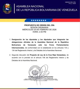 La Asamblea Nacional de Venezuela llevará a cabo este miércoles, 25 de febrero, a las 2:30 de la tarde, la segunda discusión del Proyecto de Ley de la Cruz Roja Venezolana. Esta sesión se enmarca dentro de la agenda del periodo parlamentario 2026 y representa un paso significativo en el desarrollo de esta importante iniciativa legislativa.