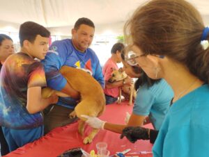 06-04-2025-Este sábado se desarrolló una productiva jornada comunitaria en la Urbanización Villa Paraíso, parroquia El Bajo, municipio San Francisco, organizada por la Gran Misión Venezuela Mujer a través del Vértice 7 Ecologista-Animalista, en coordinación con el Ministerio de Ecosocialismo (Minec), Compañía Nacional de Reforestación (Conare), Misión Nevado, UBCH Desiderio Vílchez, Guardería Ambiental de la Guardia Nacional Bolivariana, Comuna y Partido Socialista Unido de Venezuela (PSUV). Durante la actividad se atendieron 90 mascotas entre perros y gatos, brindando servicios gratuitos de consulta veterinaria, vacunación antirrábica, desparasitación, limpieza de oídos y corte de uñas.