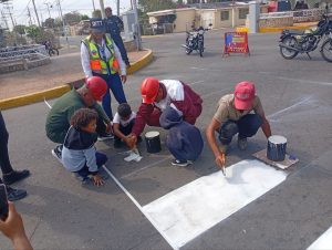 En el marco del plan nacional “Respeta el Rayado, No te Rayes”, este viernes 20 de febrero el Instituto Nacional de Transporte Terrestre (INTT), a través de su oficina de Ciudad Ojeda, llevó a cabo una jornada de demarcación vial en las adyacencias de la E.B.C.E Sara Montiel, ubicada frente al sector Campo Altamira, en el municipio Simón Bolívar del estado Zulia.