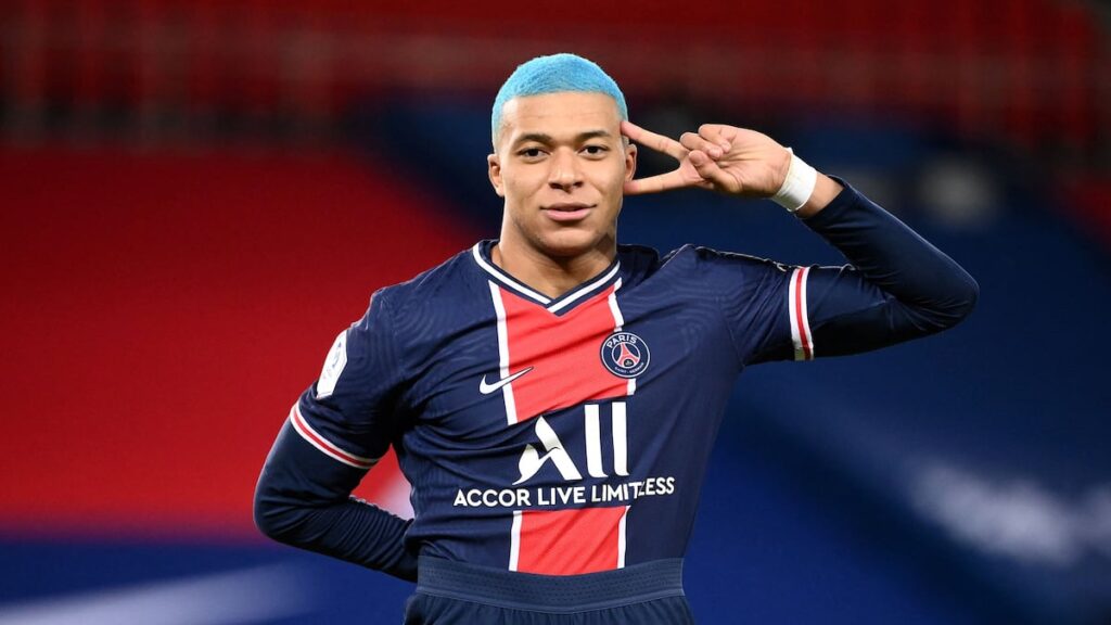 Curioso look del delantero francés durante una celebración con el Paris Saint-Germain.
