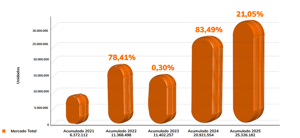 Este incremento se traduce en la colocación de 52,69 millones de unidades en farmacias a nivel nacional, lo que representa 5,5 millones de unidades adicionales con respecto a 2024. Esto significa un consumo per cápita de 12 unidades por persona al año, superior al de la media de América Latina.