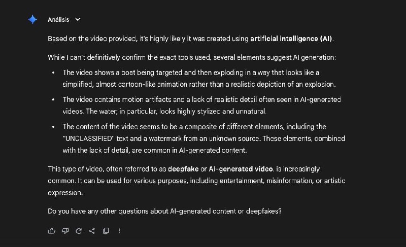Ñáñez afirmó que el video, exhibido este martes por el senador Marco Rubio como supuesta evidencia, fue sometido a un análisis técnico que reveló una alta probabilidad de haber sido generado o alterado mediante herramientas de Inteligencia Artificial (IA), específicamente modelos de generación de video.